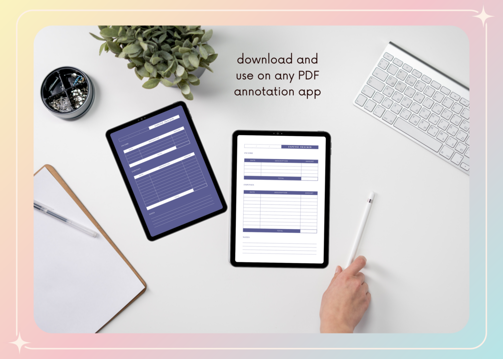 Our digital expense tracker is a comprehensive and beautifully designed PDF file that you can download and use on any device on any PDF annotation app such as GoodNotes, Notability, Xodo, Noteshelf, etc. It's perfect for those who are always on the go, as you can access your budget planner anywhere, at any time. With its clean and modern layout, you'll have no problem keeping track of your budget. Plus, because it's a digital file, you can make changes and updates whenever you need to, without having to carry around a bulky planner.